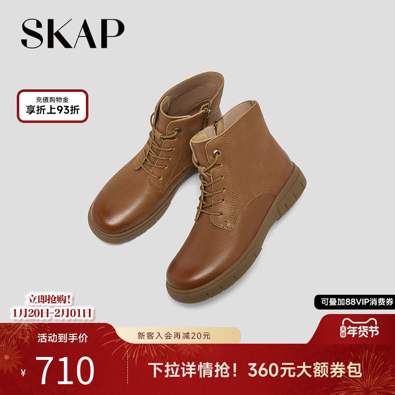 SKAP圣伽步女鞋2025冬季新款马丁靴复古户外高帮短靴女款休闲靴