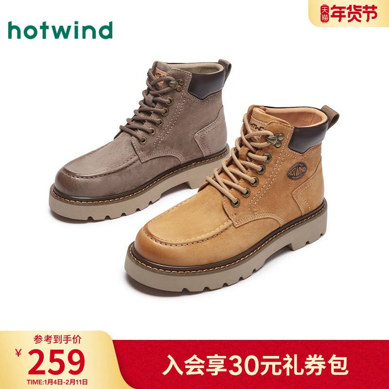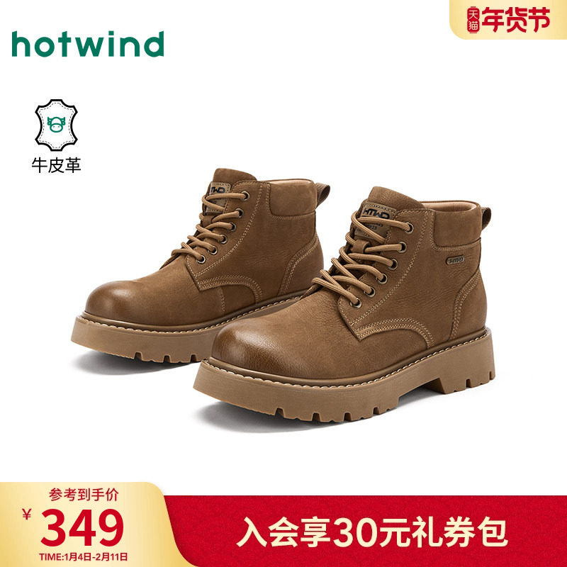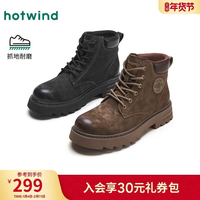 热风男鞋2025年冬季新款男士时尚休闲靴子棕色马丁靴复古短筒靴
