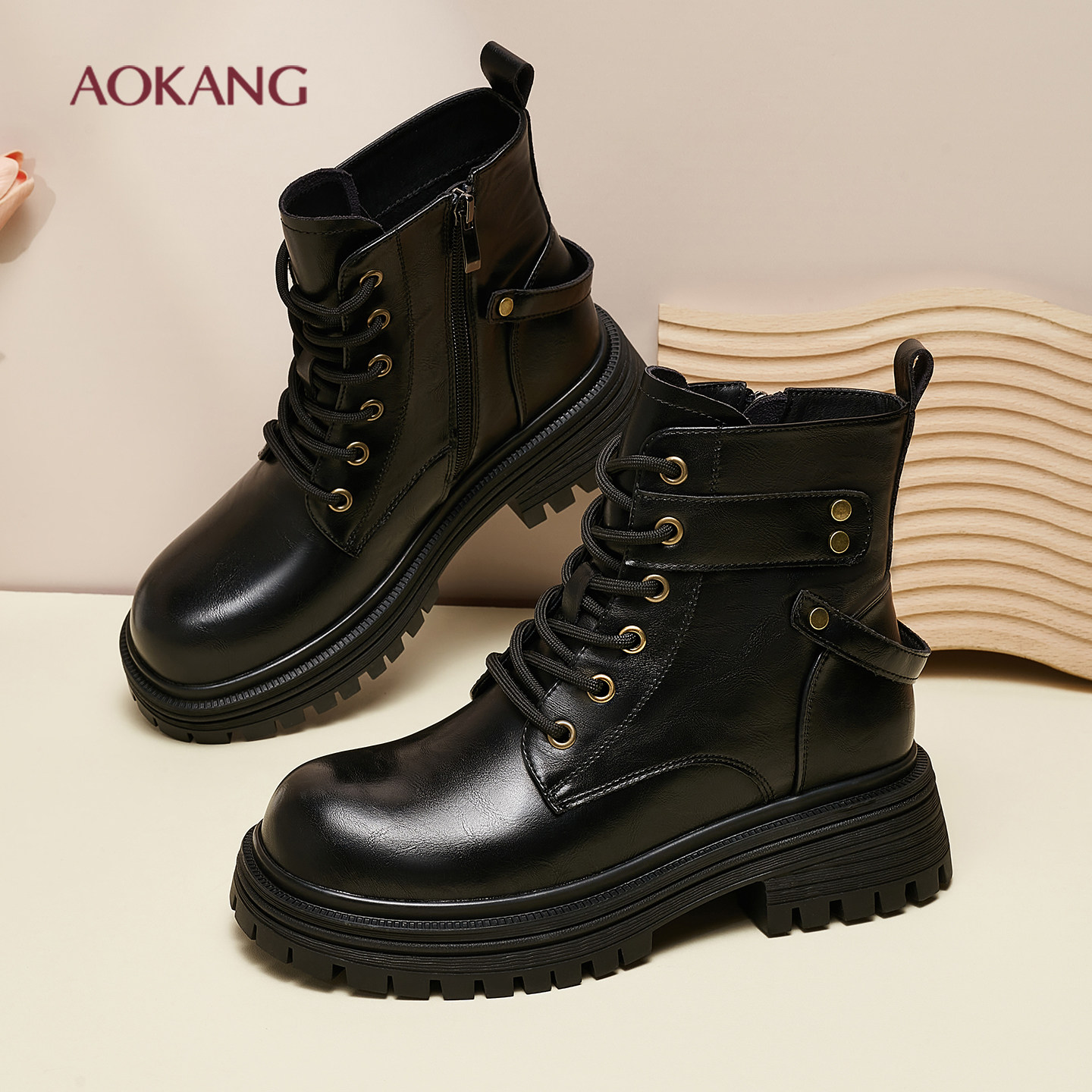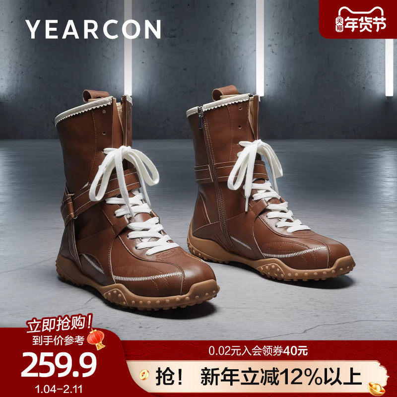 意尔康拳击靴女士2025新款内增高马丁靴复古皮系带德训靴搏击短靴