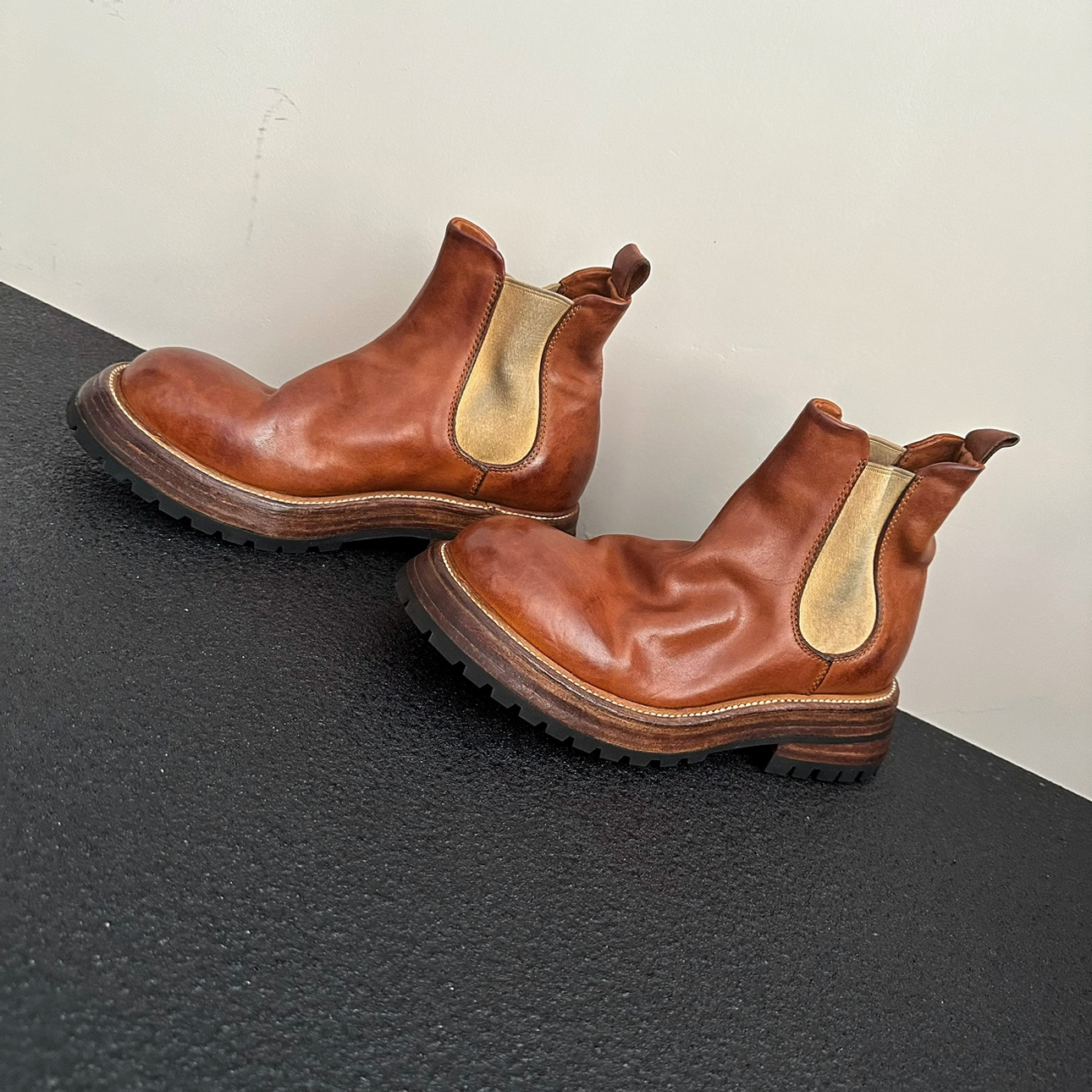 2025新款小众德比切尔西大头胎牛皮男女马丁靴复古做旧厚底短筒