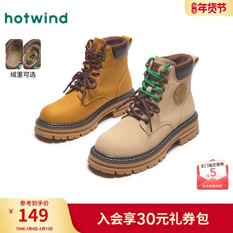 热风女鞋25冬新款女士厚底百搭马丁靴复古气质大黄靴简约短筒靴女