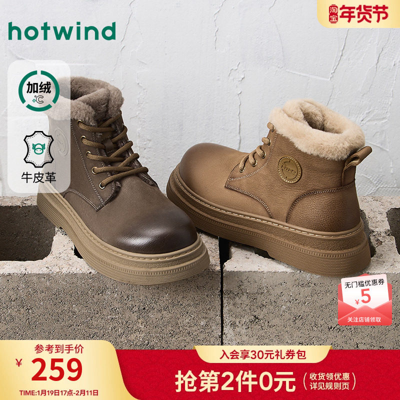 热风男鞋2025年冬季新款男士加绒保暖马丁靴复古百搭棕色休闲靴子