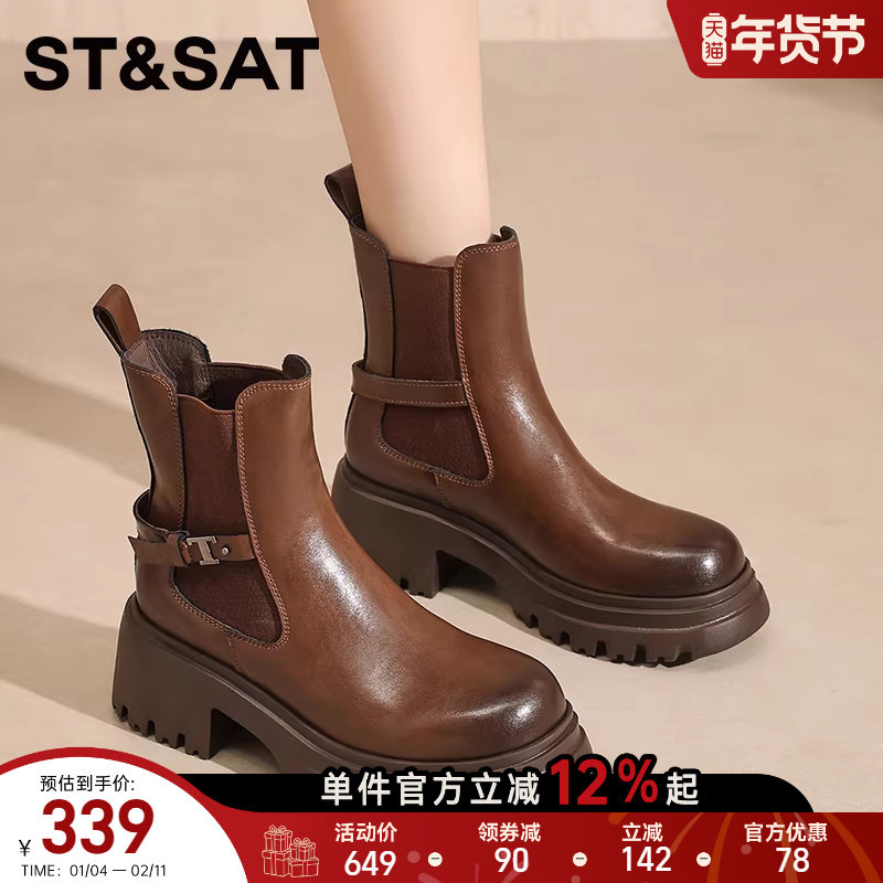 星期六厚底切尔西靴女2025新款秋冬英伦风马丁靴复古短靴烟筒靴子