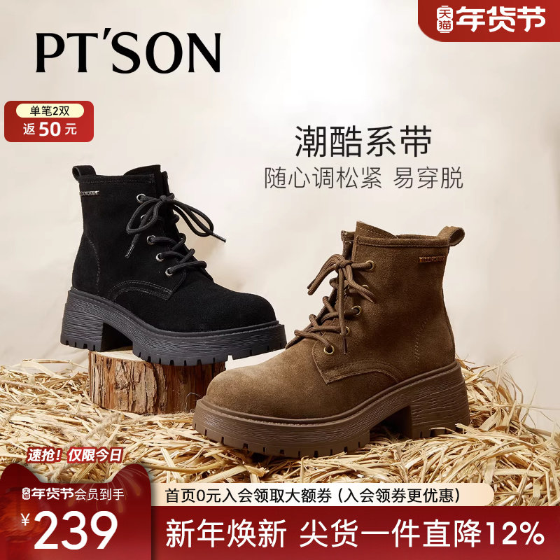蹀愫2025冬季新款厚底靴子增高4英伦风马丁靴复古短靴TA65791-50