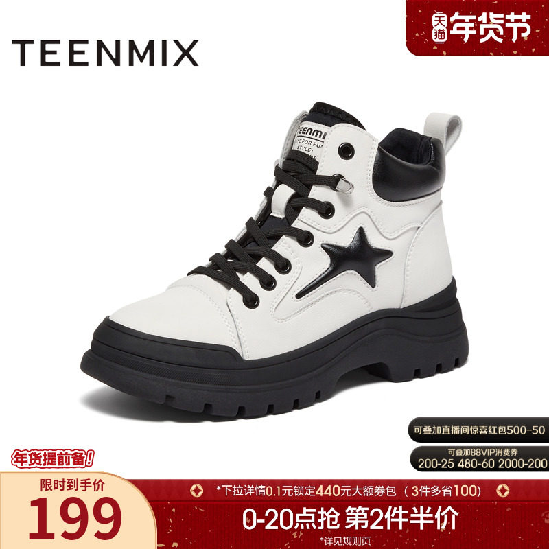 天美意复古英伦风厚底加绒马丁靴女鞋子冬新款休闲短靴皮靴时装靴