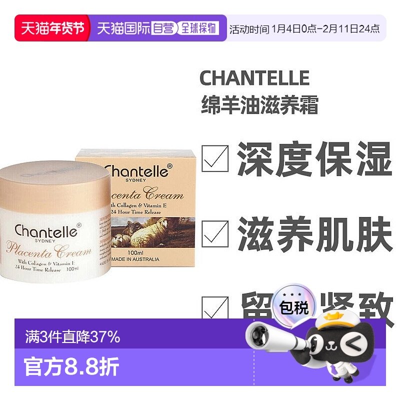 澳大利亚直邮Chantelle香娜露儿羊胎素绵羊油滋养霜保湿夜霜100ml