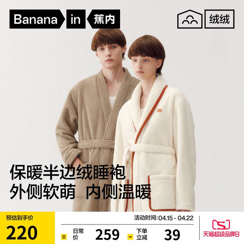 蕉内绒绒500Home男女同款保暖半边绒加厚加绒净色直襟冬季睡袍
