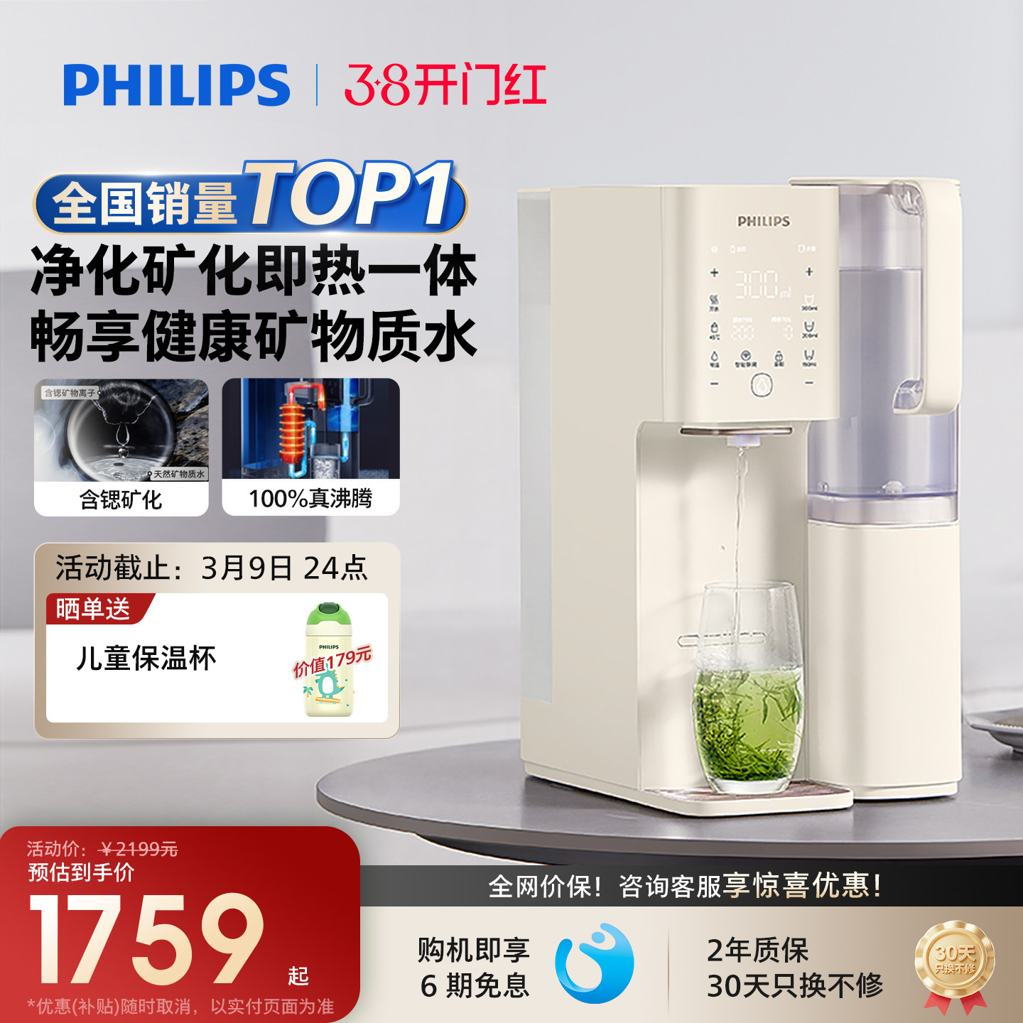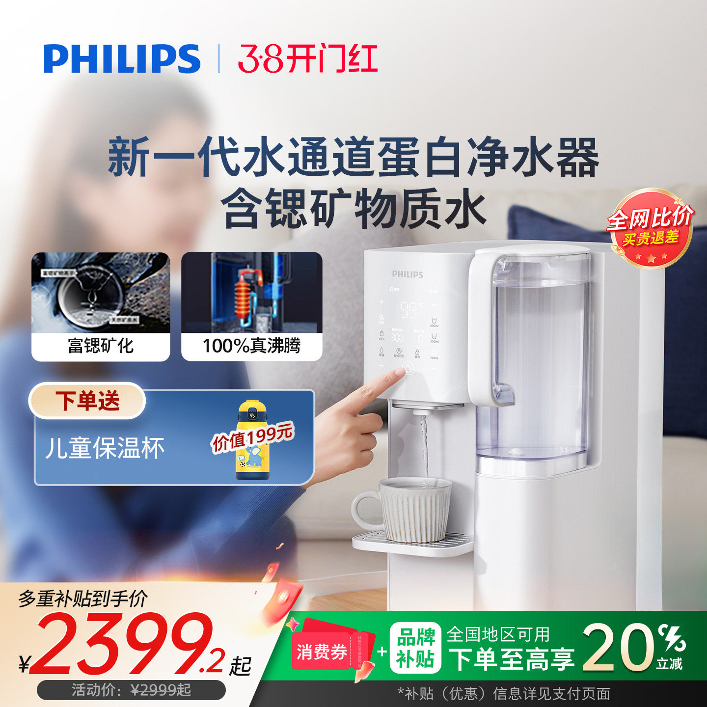 飞利浦含锶免安装净水器家用即热台式饮水机加热一体净饮机8636