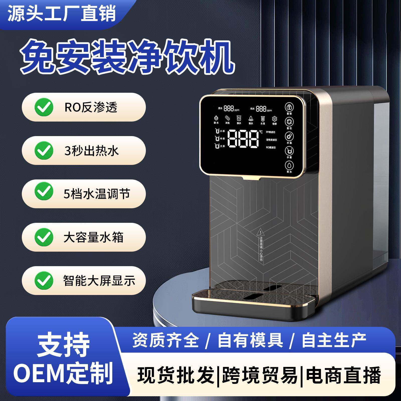 免安装净水器家用台式语音加热一体机RO反渗透直饮纯水净水机厂家