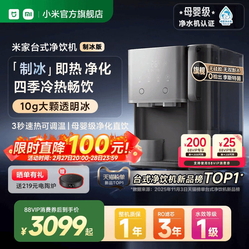 小米官旗米家台式净饮机制冰版净水器家用免安装直饮即热净饮水机