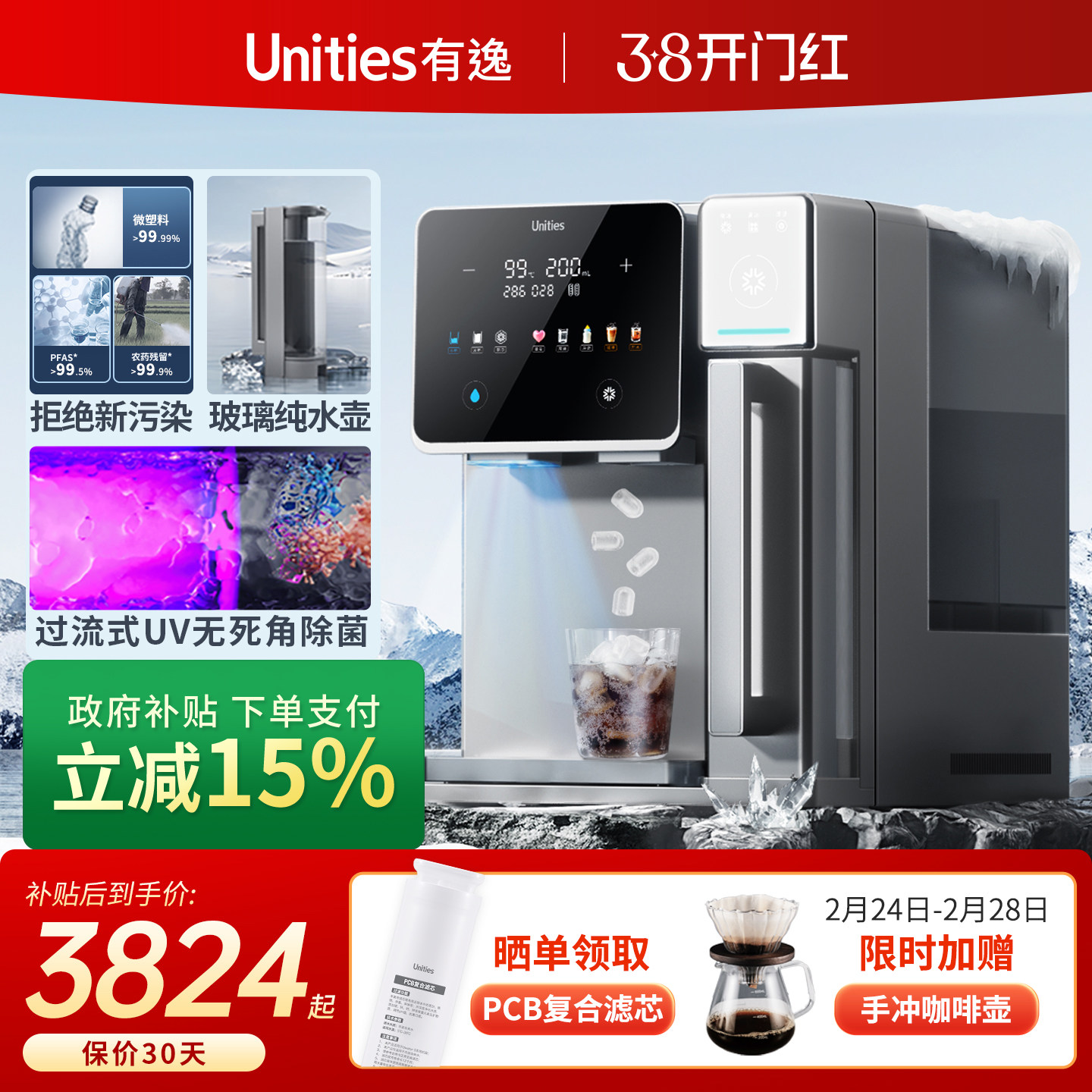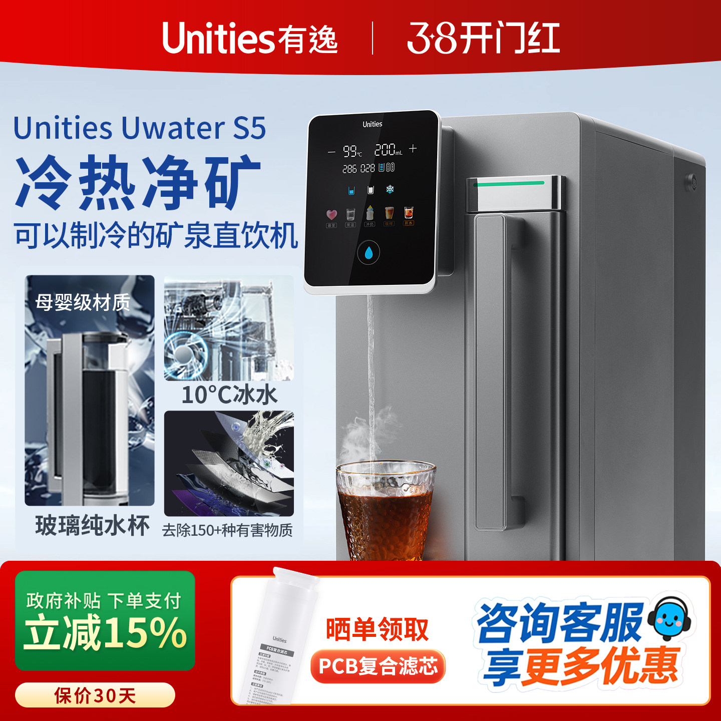 Unities有逸S5 免安装冷热一体台式矿泉净水器净饮机RO反渗透制冷