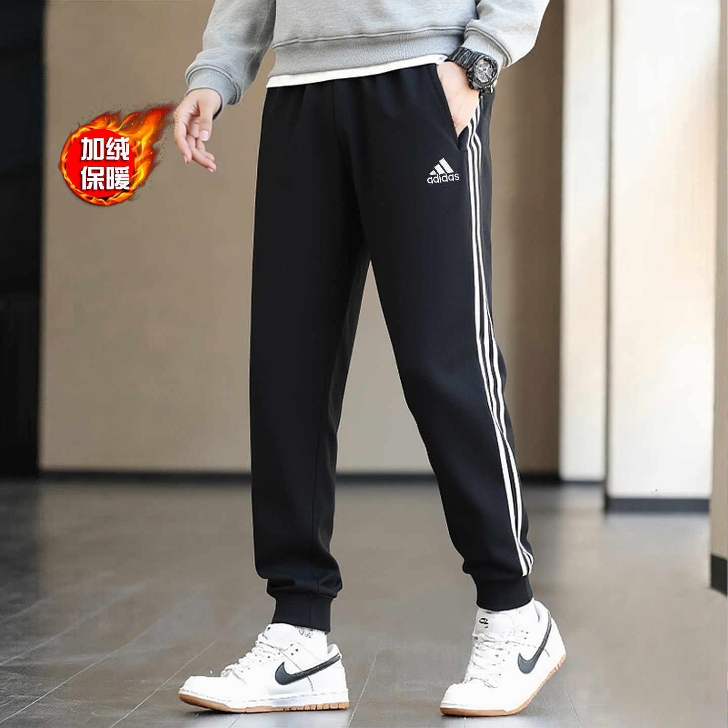 阿迪达斯加绒运动裤男裤子秋季新款正品卫裤针织保暖长裤篮球卫裤