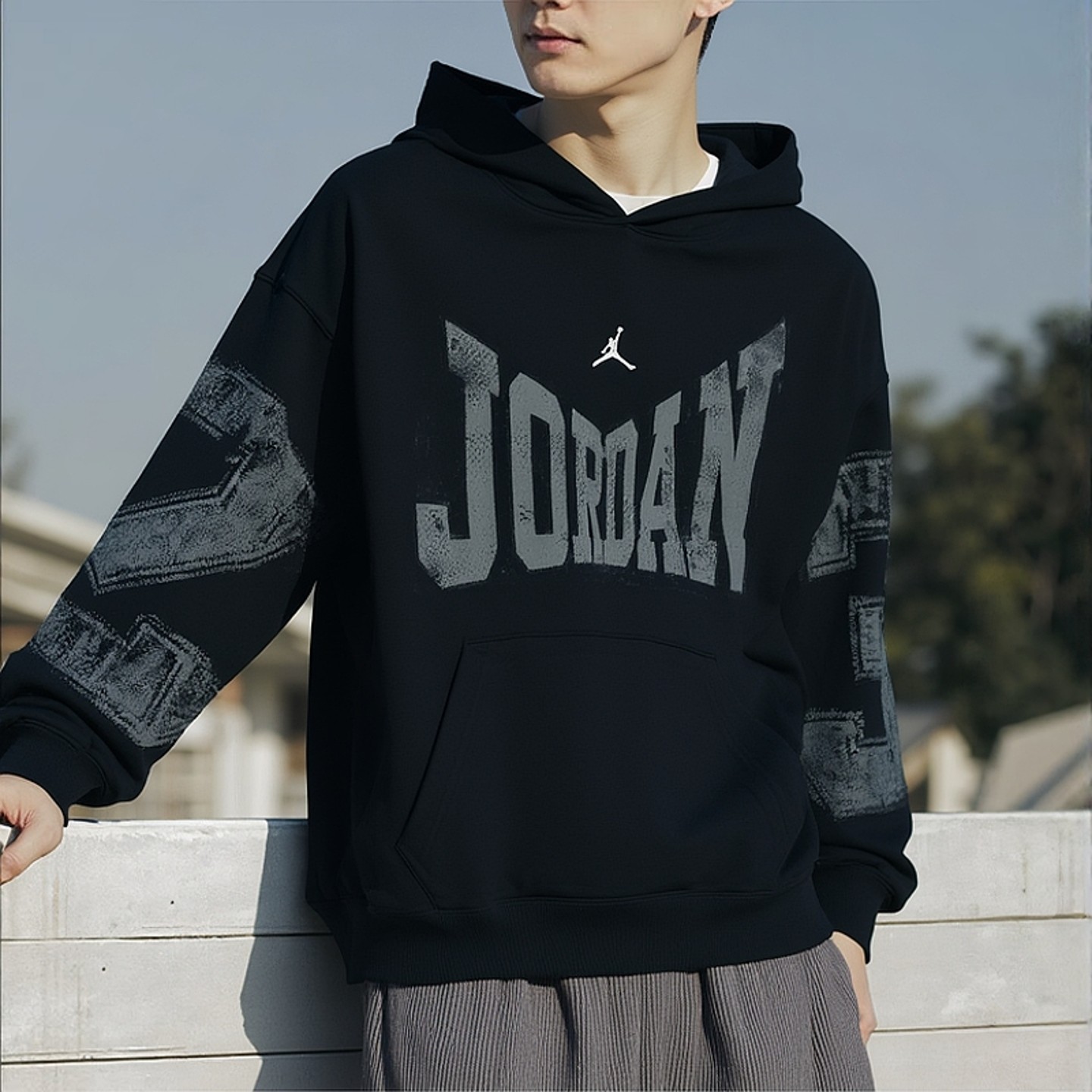 Jordan乔丹大标印花卫衣AJ篮球上衣新款针织运动装男子宽松版外套