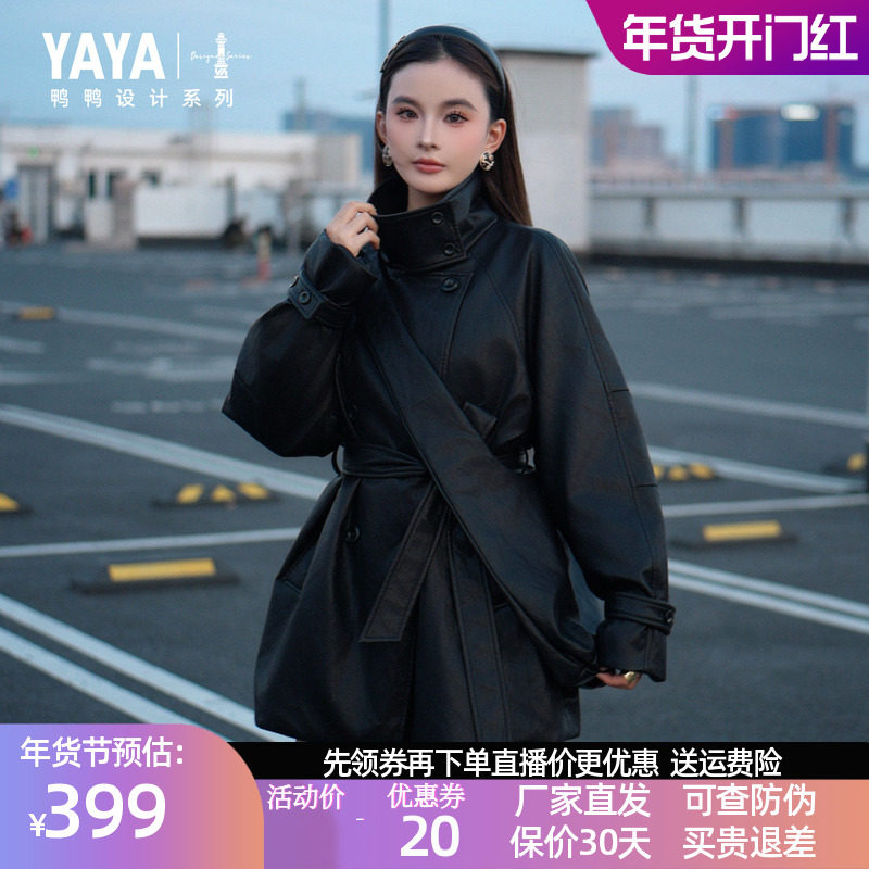 鸭鸭羽绒服2025年冬装新款女士韩版时尚休闲中长款立领皮衣外套