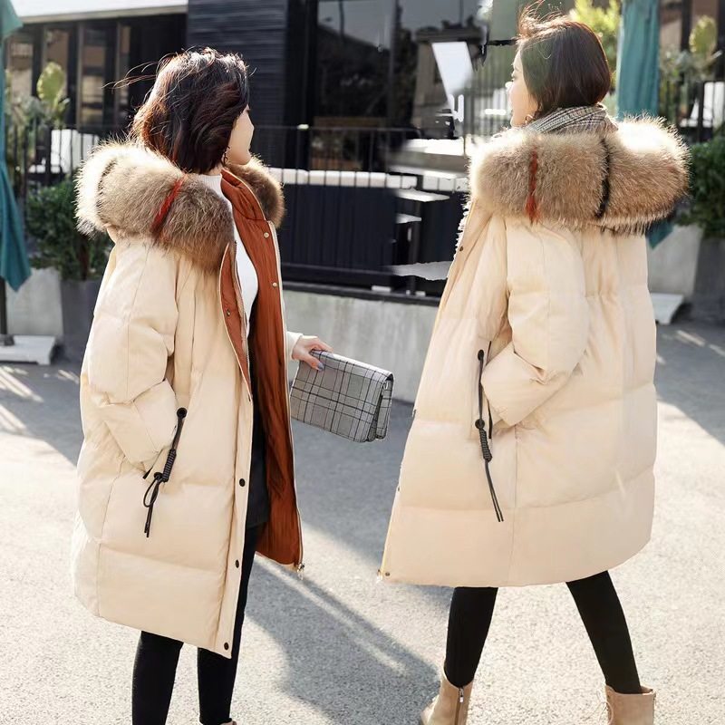 冬装新款女装韩版时尚宽松大毛领鹅绒外套女中长款加厚女士羽绒服