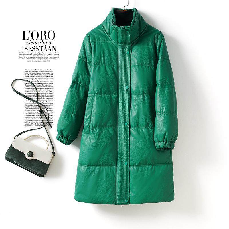 真皮衣女士外套中长款韩版宽松90白鸭绒海宁冬装新款绵羊皮羽绒服