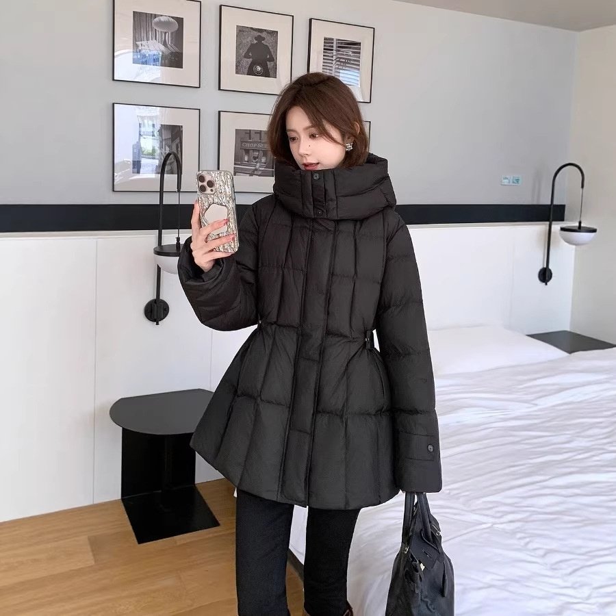2025中长款轻薄羽绒服韩版加厚羽绒外套显瘦连帽女士超轻面包冬装