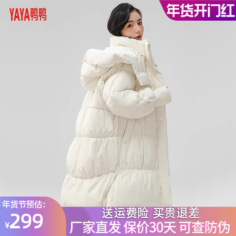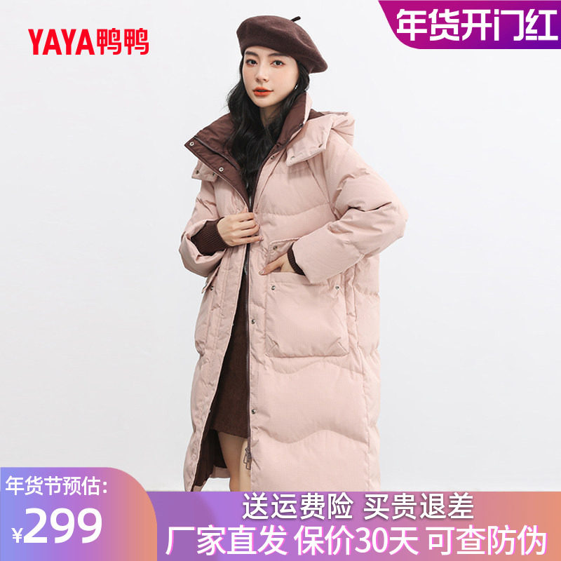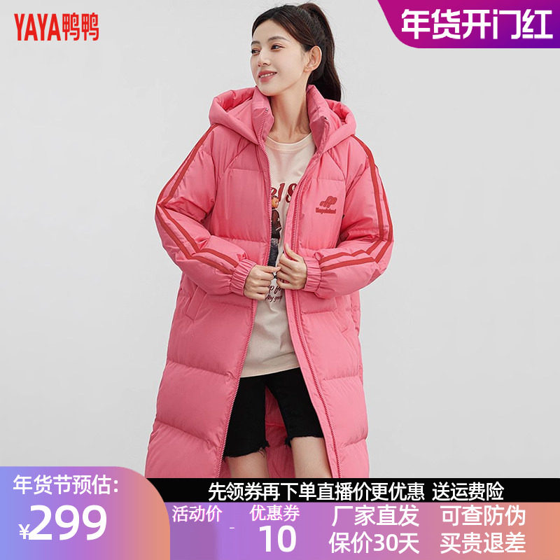 鸭鸭羽绒服冬装新款女装女士中长款连帽时尚韩版休闲加厚保暖外套