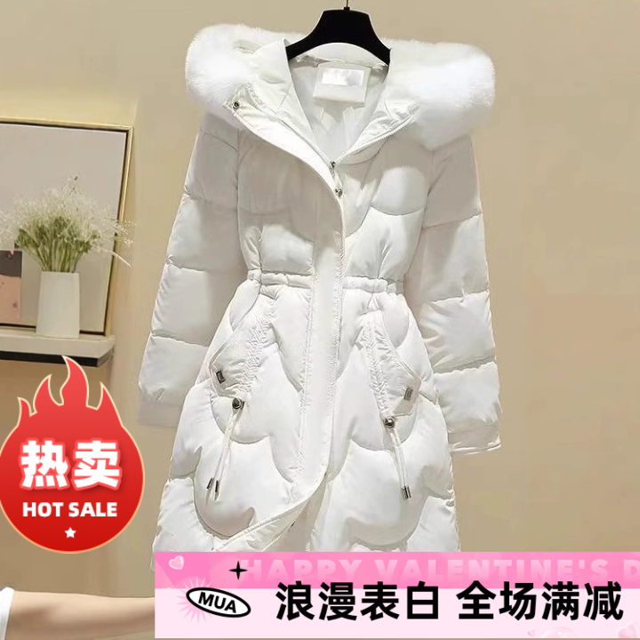 2025冬装新款加厚女士韩版过膝中长款连帽羽绒服90白鸭绒抗寒外套