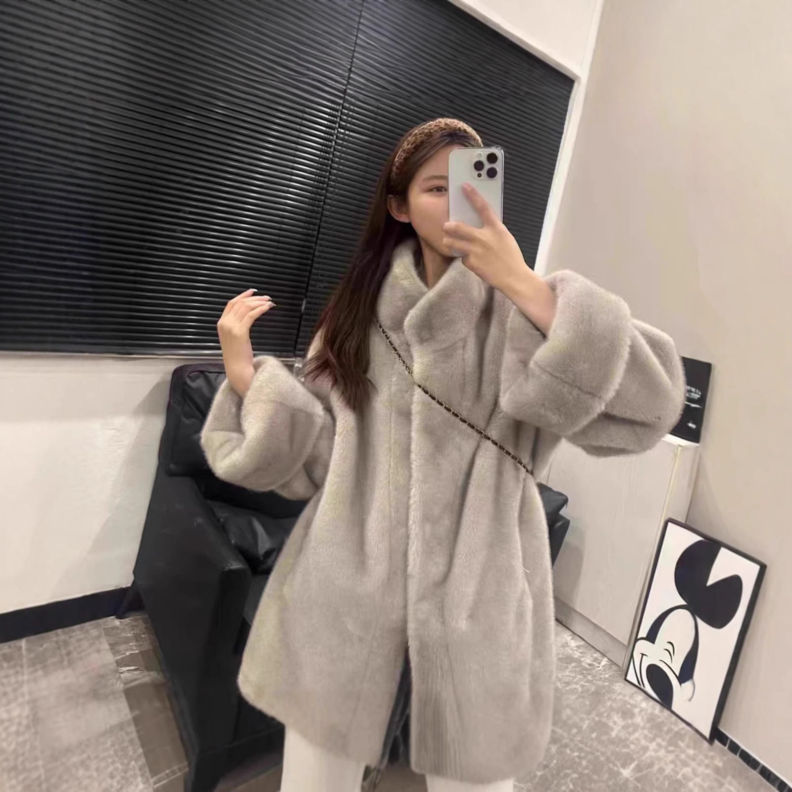 女士高级感冬装外套皮草中长款仿貂毛女毛领韩版宽松显瘦貂绒大衣