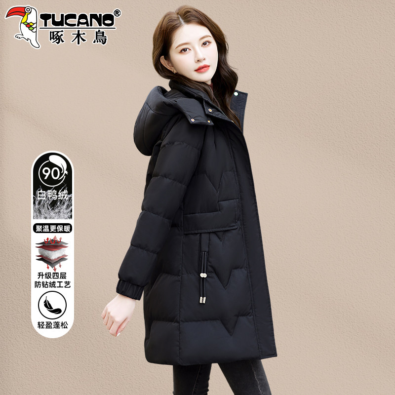 啄木鸟女士羽绒服冬季2025新款中长款时尚韩版冬装保暖白鸭绒外套