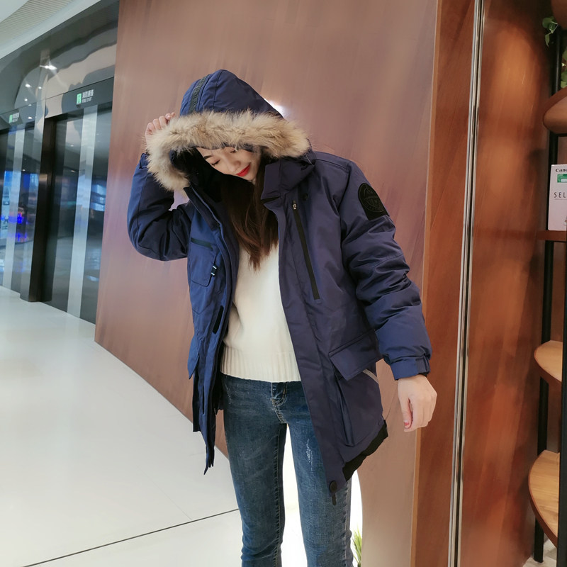 新户外加厚羽绒服女士中长款时尚韩版修身休闲保暖外套大毛领冬装