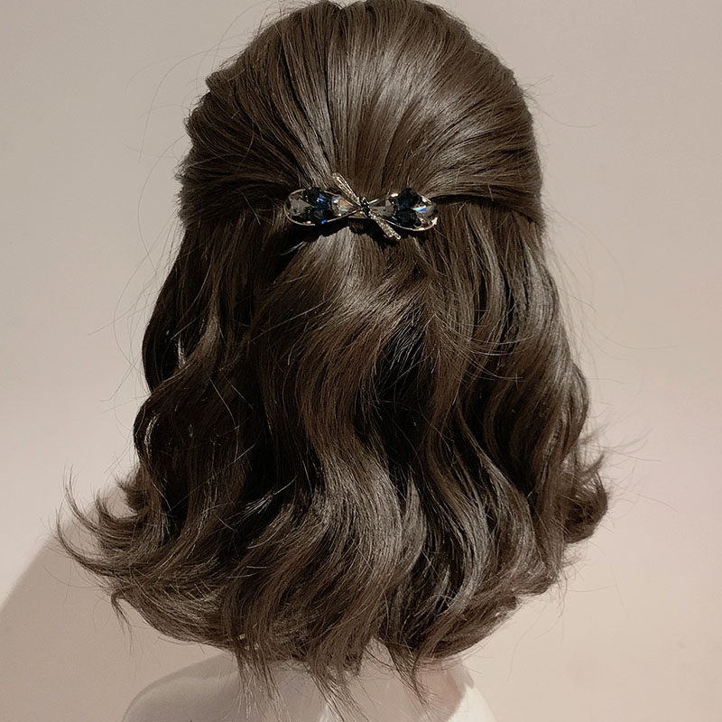 韩国高级感镶钻蝴蝶结发夹闪亮水钻弹簧夹气质高端后脑勺顶夹发饰