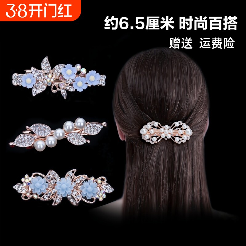 韩版发饰品水钻蝴蝶结简约发夹成人珍珠横夹马尾夹顶夹弹簧夹小号