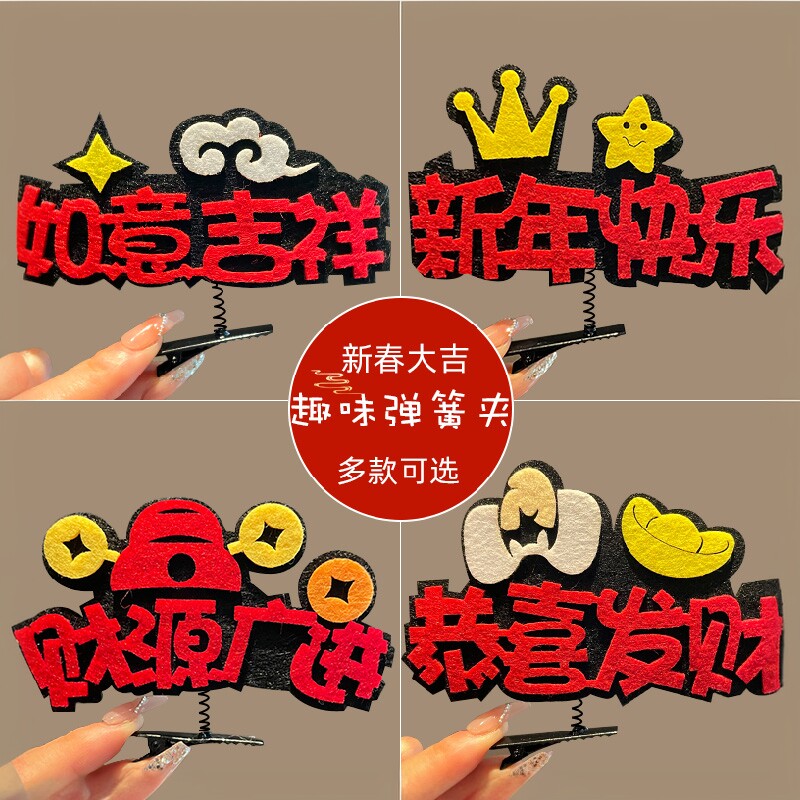 新年过年发夹新中式搞怪弹簧夹头饰创意节日发饰顶夹发卡年会活动