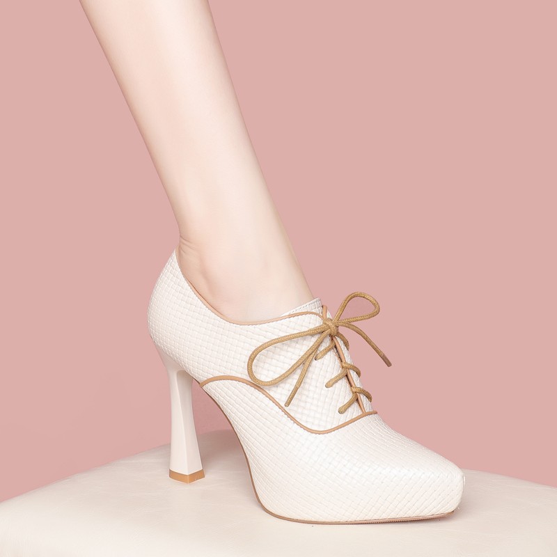 防水台高跟鞋2025春秋新款真皮百搭女鞋欧美系带厚底深口粗跟单鞋