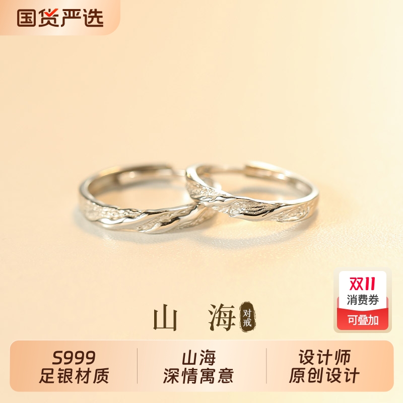 山海S999足银戒指女男一对小众设计款情侣对戒纪念日礼物送女朋友