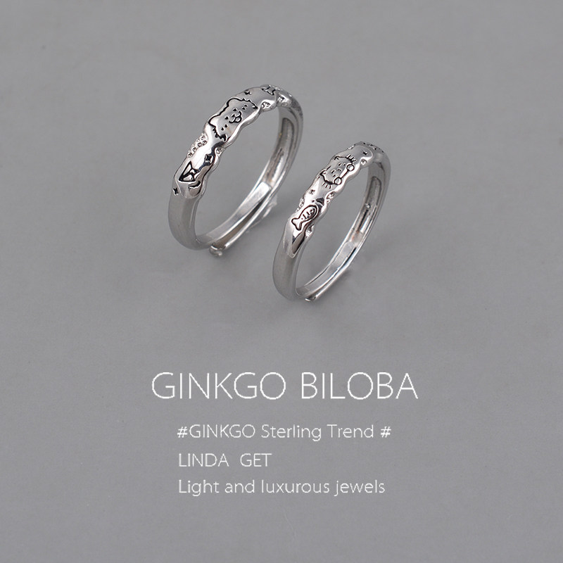 【可刻字】卡蒂罗猫咪日记情侣对戒纯银戒指一对生日礼物送男女友
