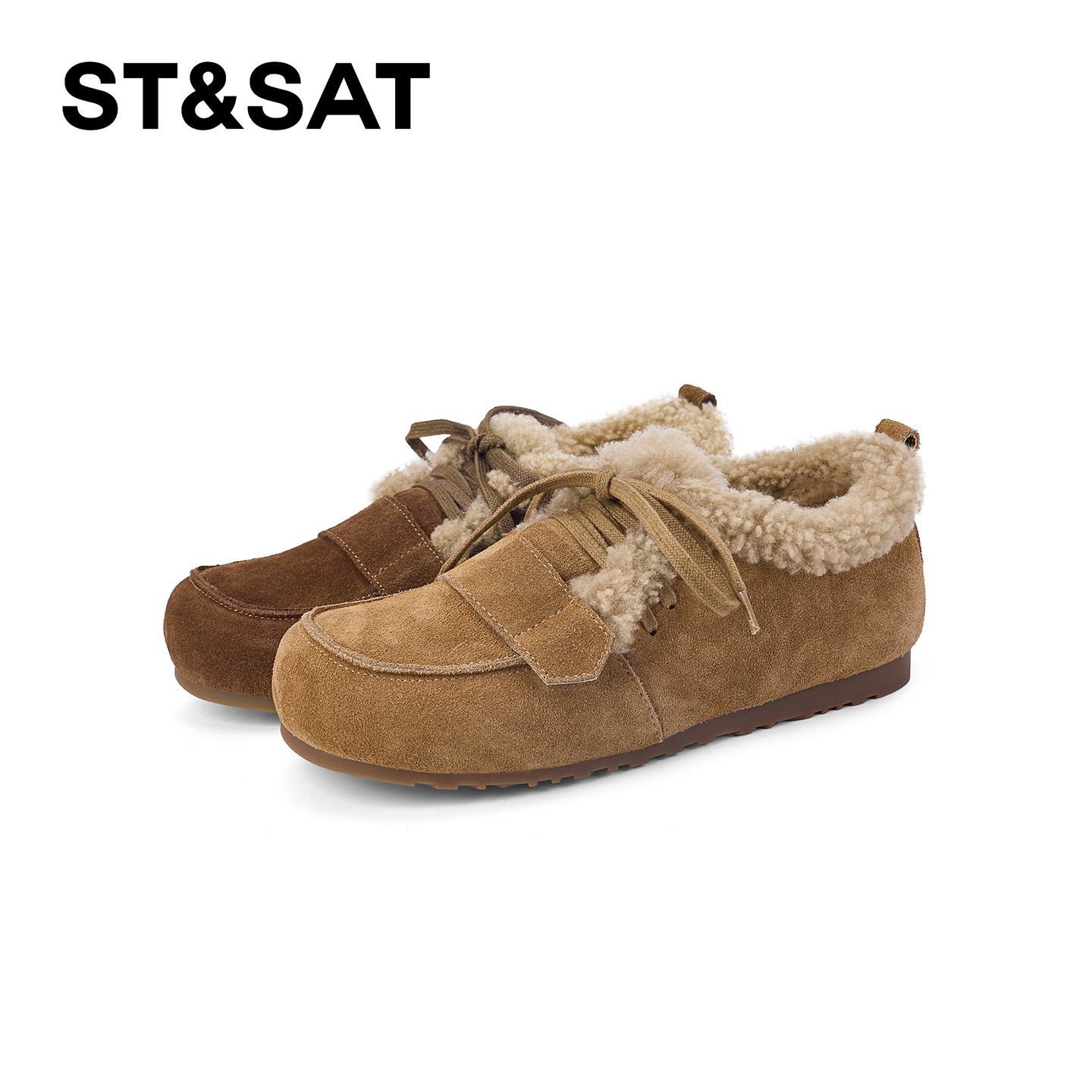 St&Sat/星期六系带通勤雪地靴深口时尚保暖韩版鞋子休闲百搭女靴