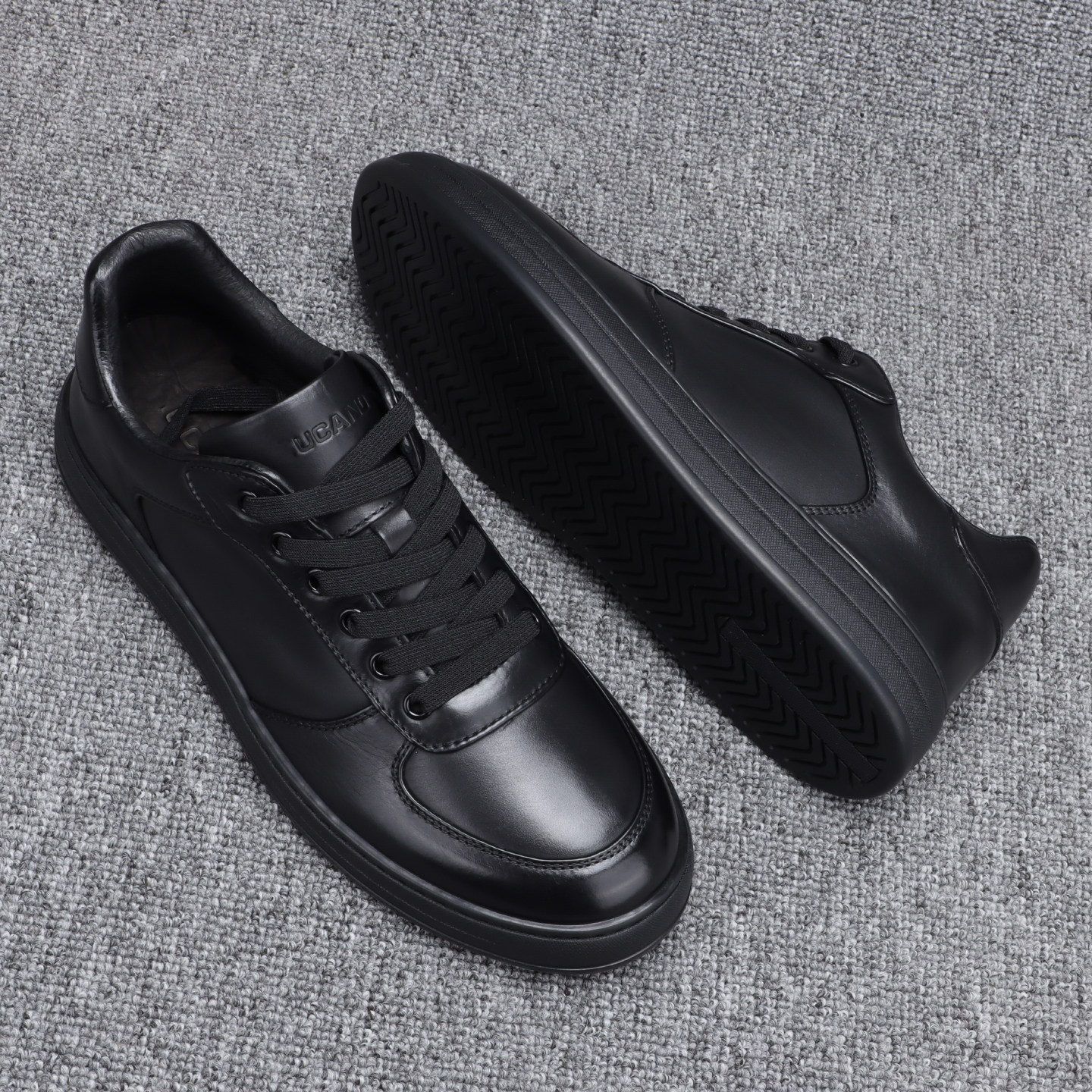 秋季休闲男鞋2025新款头层牛皮系带简约素面韩版鞋子日常百搭板鞋