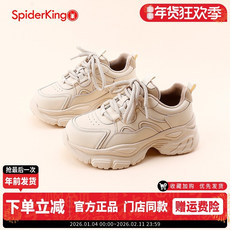 蜘蛛王加绒厚底老爹鞋女2024冬季真皮增高轻便休闲运动女鞋韩版鞋