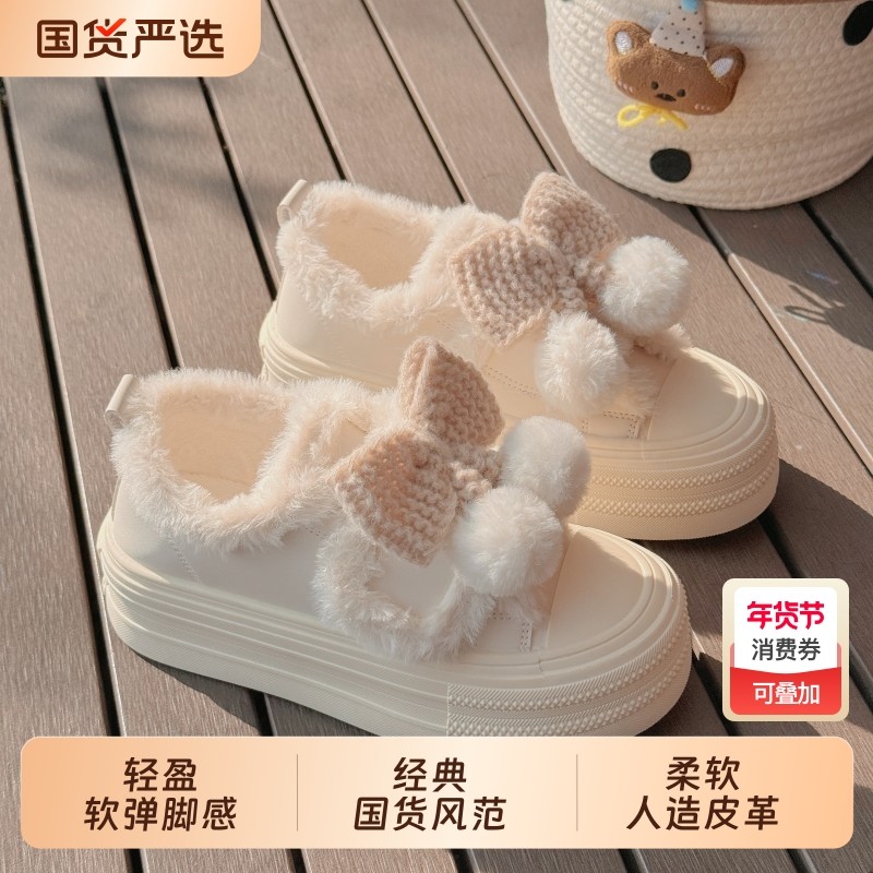 回力高级感小白鞋女鞋2026新款冬季韩版保暖二棉鞋女ins潮板鞋女