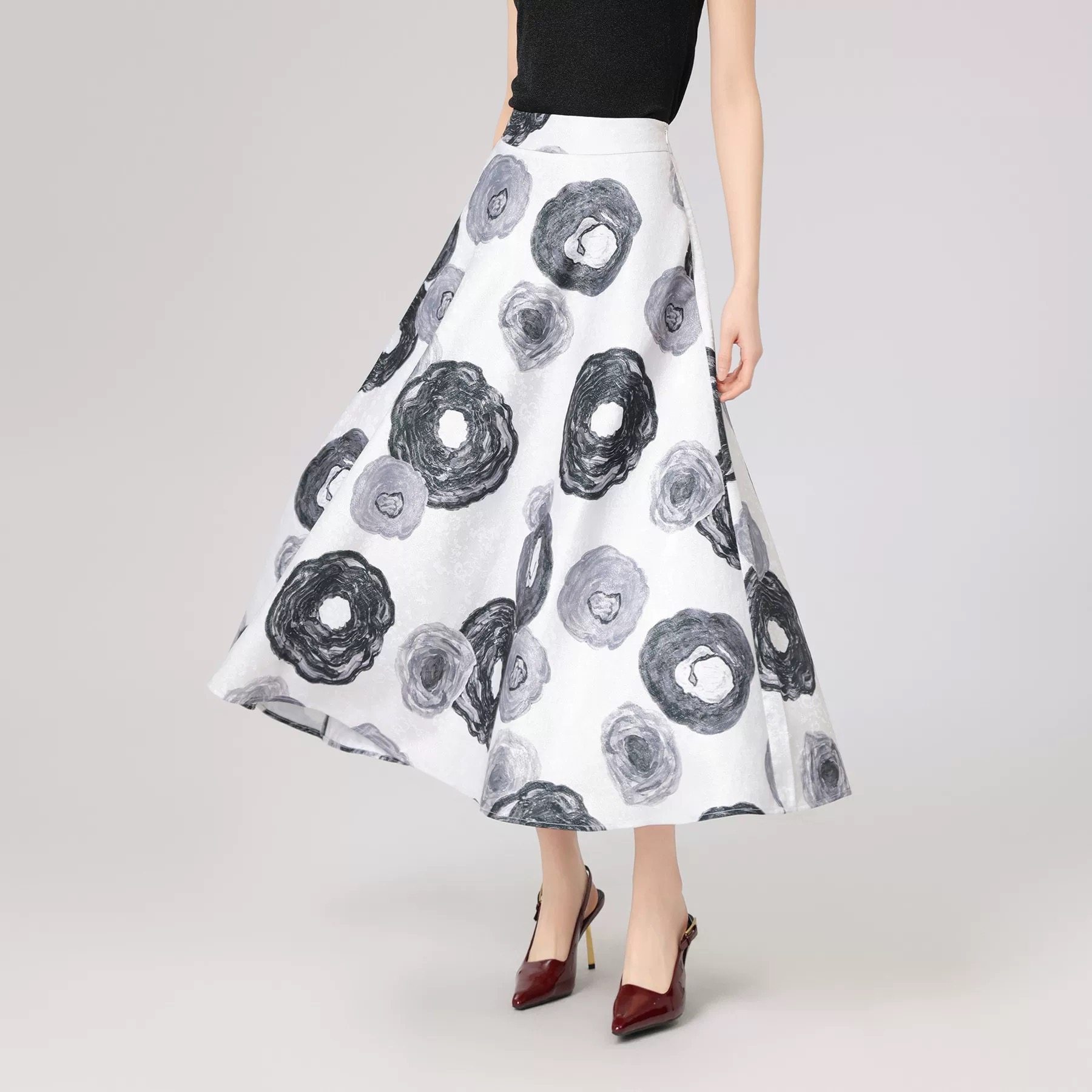 阿玛施专柜女装2026春高腰显瘦水墨印花中长款A字半身伞裙5200428