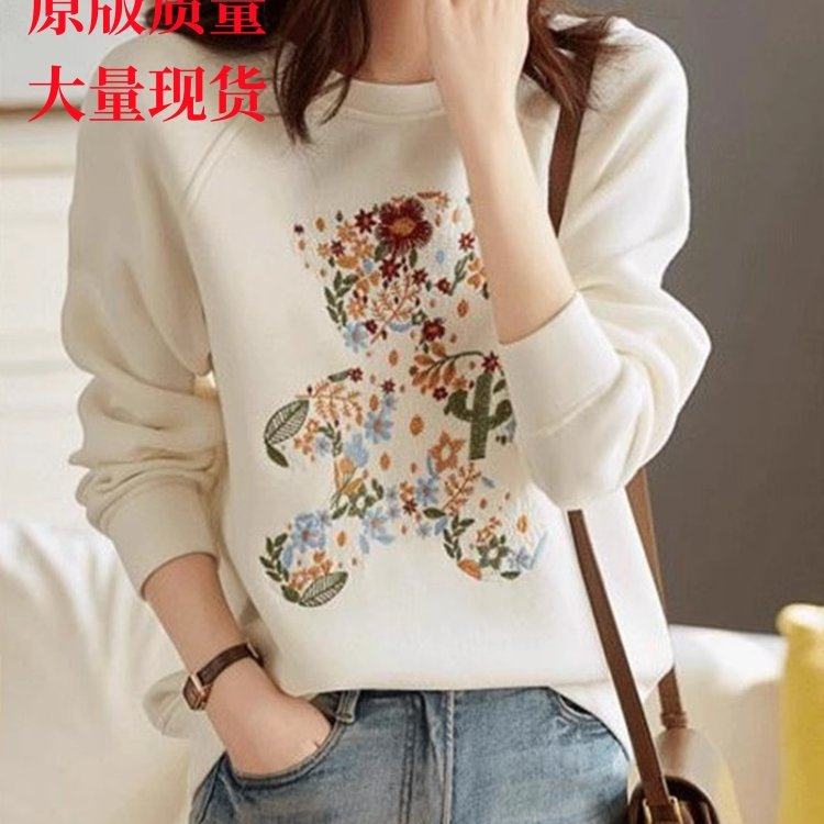 2024春秋新款小腾阿玛施月女装正品韩版宽松卡通绣花长袖休闲卫衣