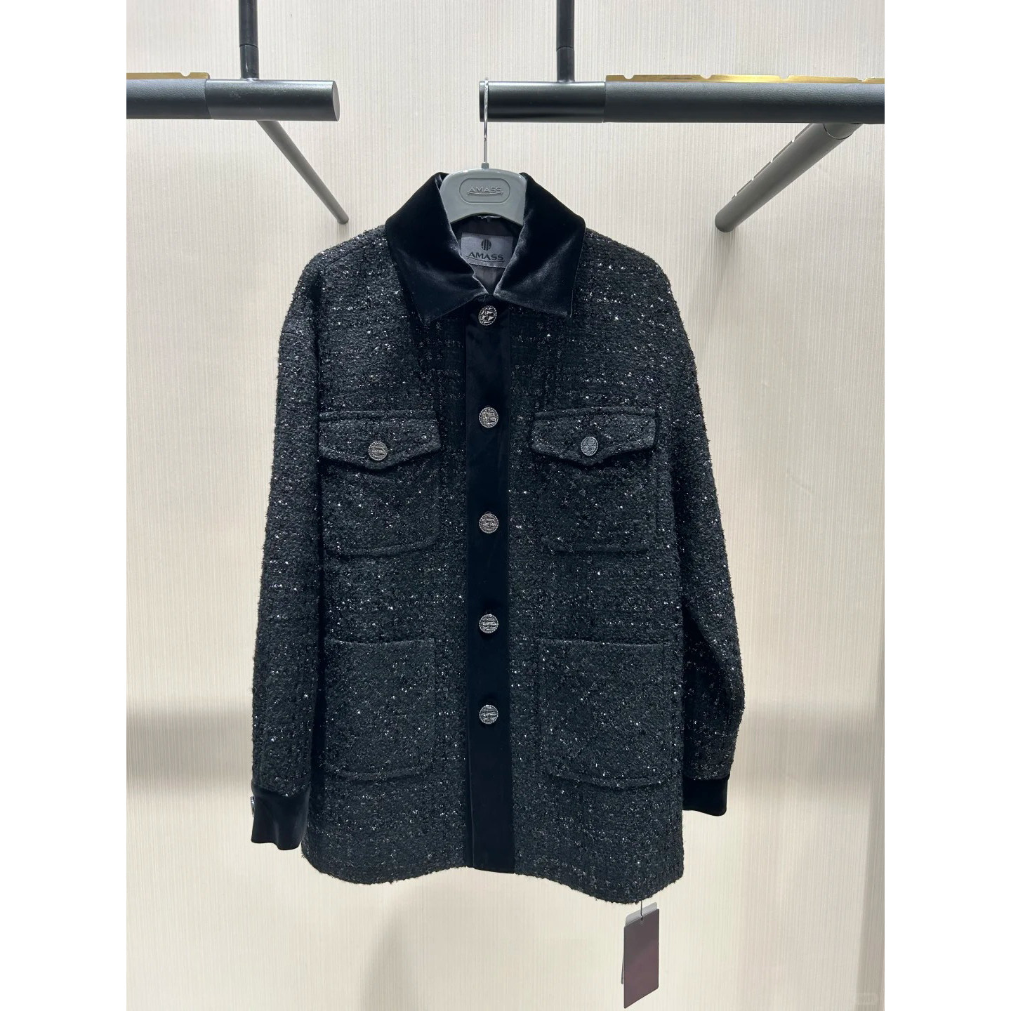 2025秋冬新款阿玛施丝绒拼接粗花呢中长款小香风外套女装5400894