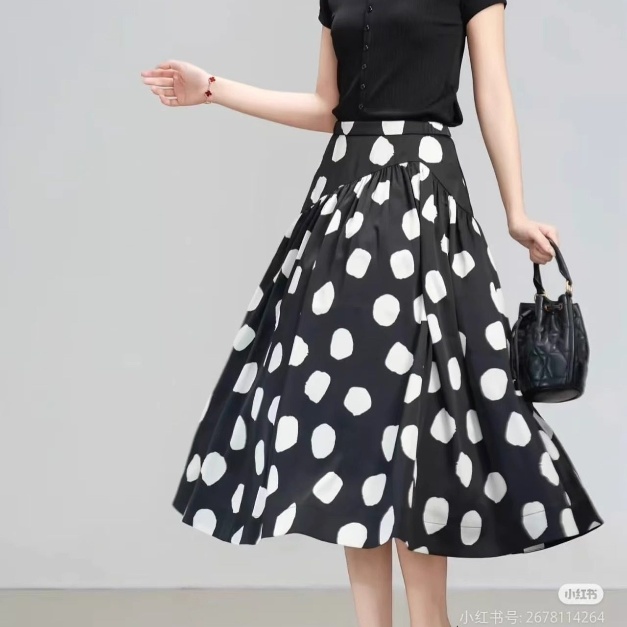 哥家专柜同款女装2026春季新高腰显瘦波点中长款半身裙伞裙120011