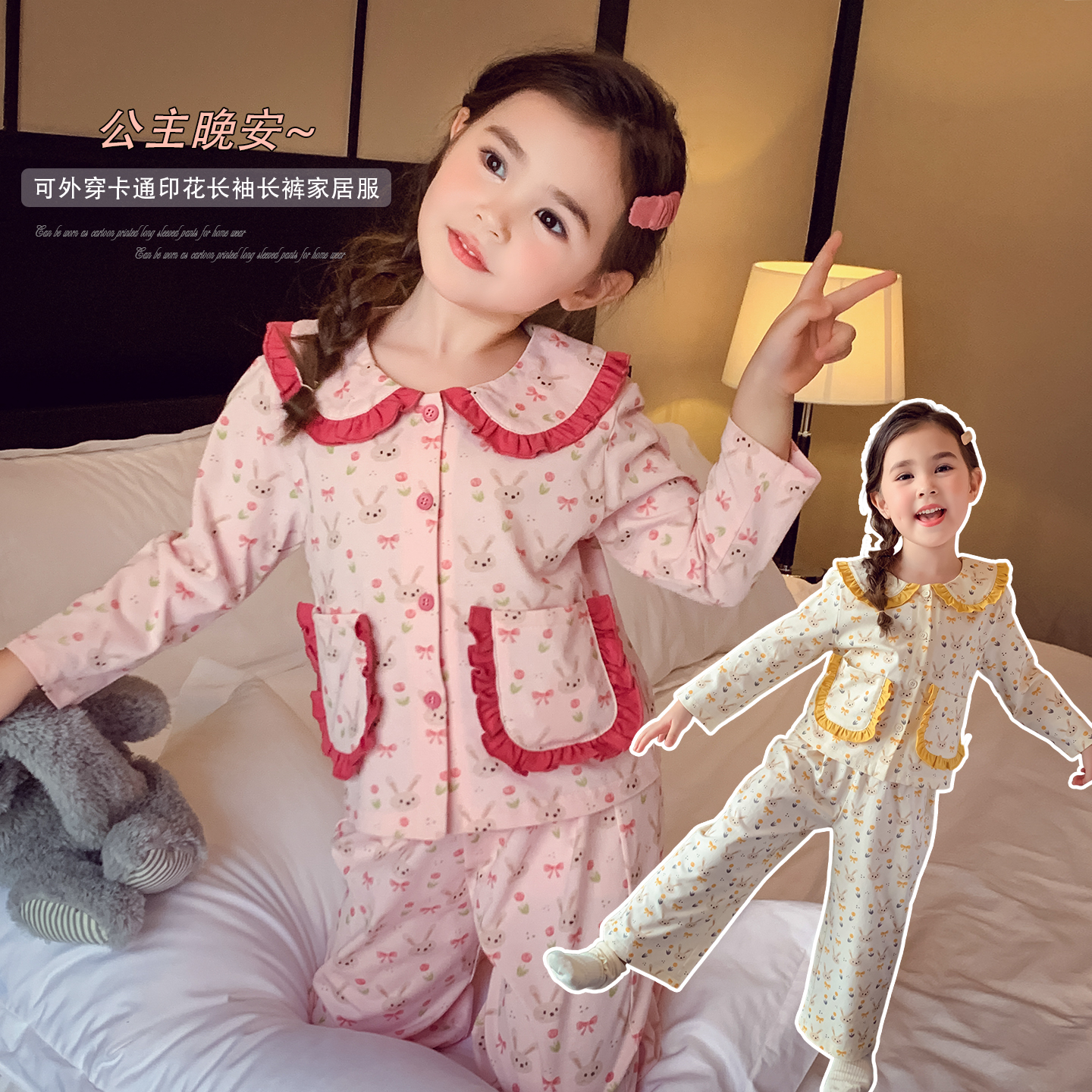 儿童睡衣女童长袖纯棉春秋季女孩韩版公主小孩全棉宝宝家居服套装