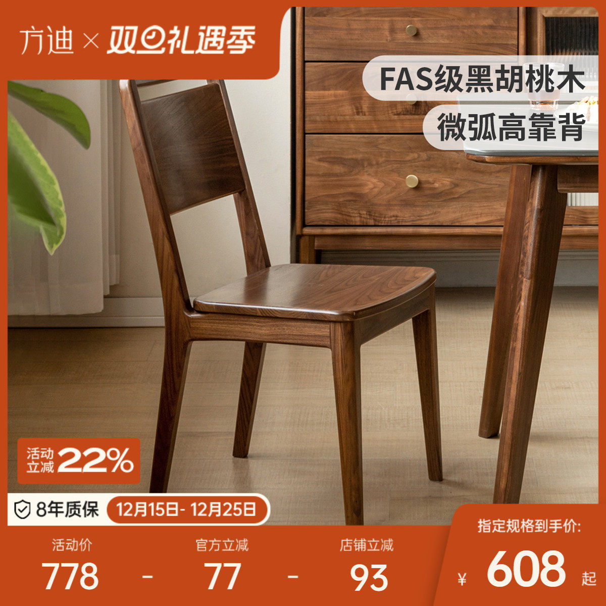 水墨兰亭北美黑胡桃实木餐椅北欧简约餐厅创意椅子原木休闲靠背椅