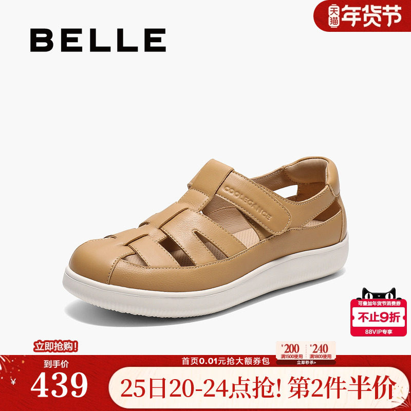 百丽透气罗马凉鞋女夏季新款包头厚底猪笼镂空单鞋子D3P1DBA5
