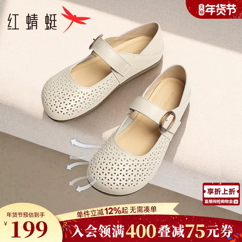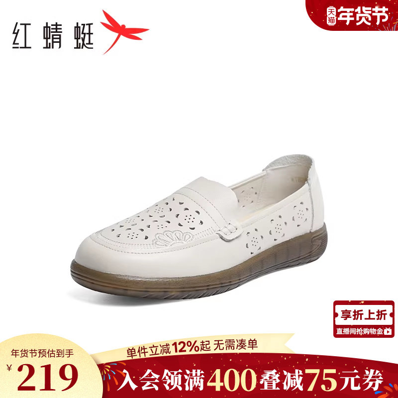 红蜻蜓妈妈鞋平底女鞋中老年鞋子真皮镂空单鞋女舒适软底奶奶皮鞋
