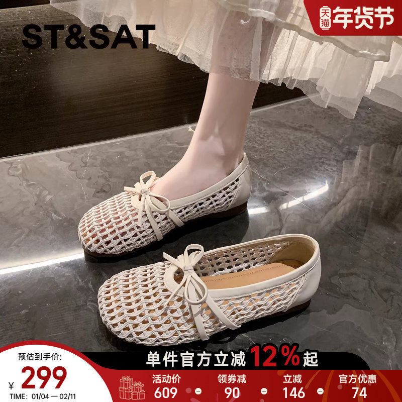 星期六编织镂空凉鞋女款夏季2026新款透气平底单鞋尖头罗马女鞋子