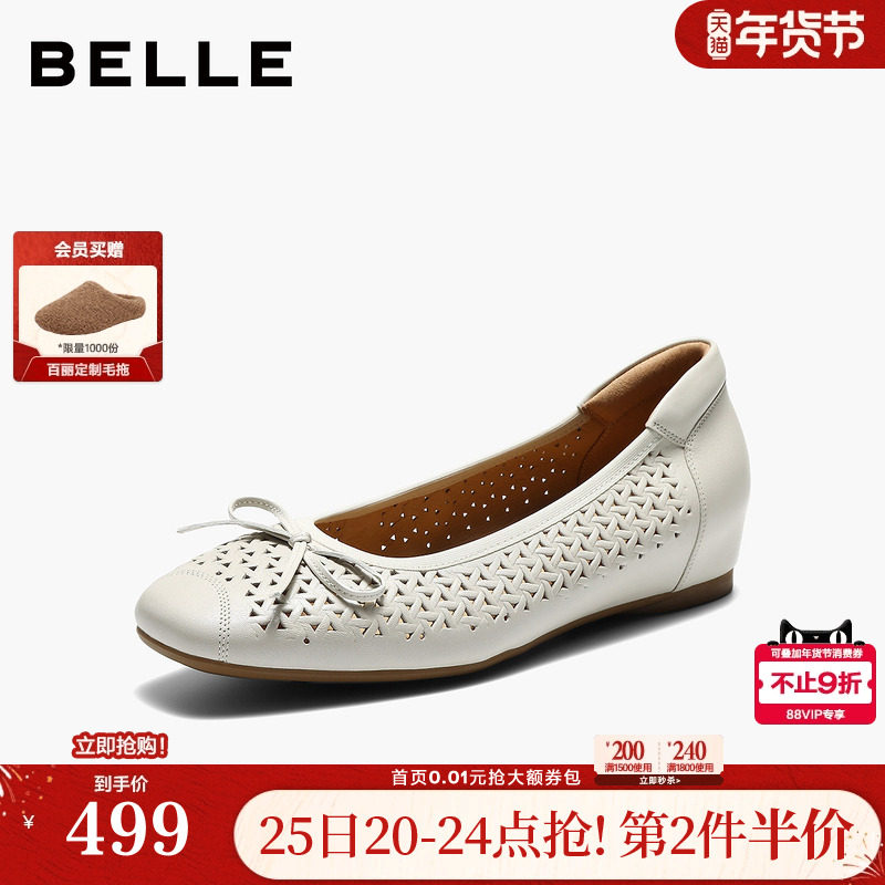 百丽镂空内增高浅口单鞋女26春季新款真皮通勤妈妈鞋子F6T1DAQ6预