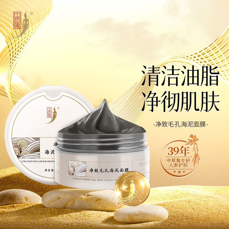 中草集净致毛孔海泥面膜清洁泥膜男女面部护肤油皮正品官方旗舰店