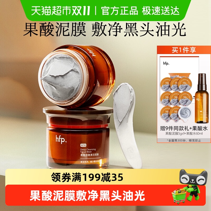 hfp果酸清洁面膜去黑头水杨酸涂抹面膜灰白泥深层清洁泥膜男女