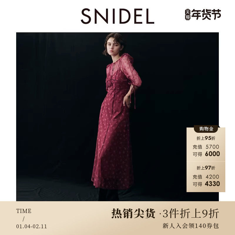 SNIDEL秋冬款优雅气质薄纱收腰植绒碎花连衣裙SWFO245031