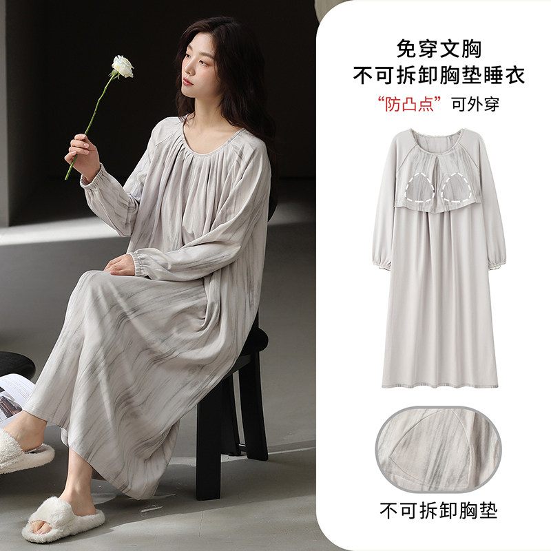2026年秋冬款高级感女士睡裙春秋季纯棉国风碎花宽松连衣裙家居服